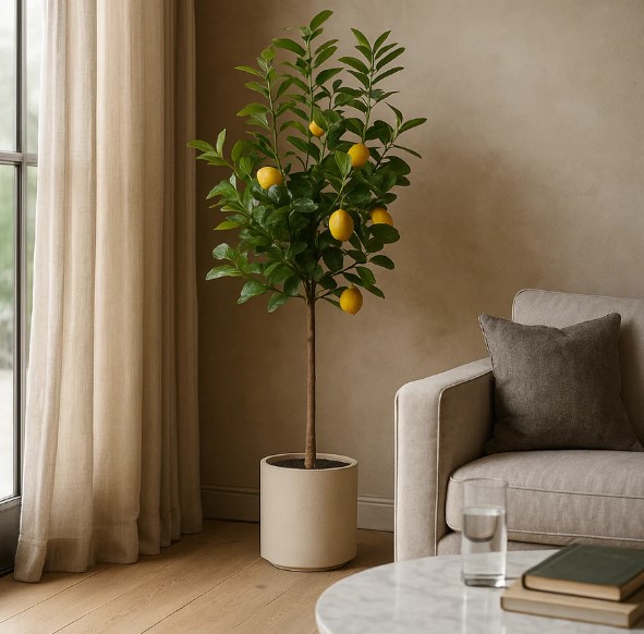 Искусственный вазон EDG Лимонное дерево в кремовом горшке В160