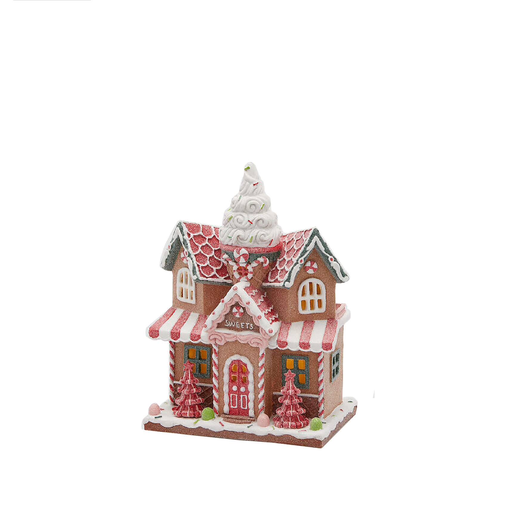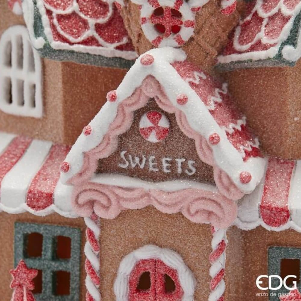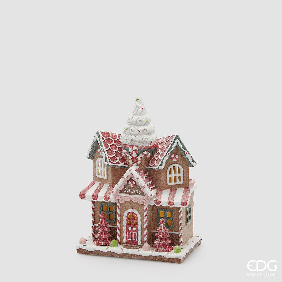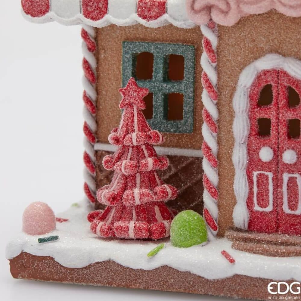 Новогодняя статуэтка EDG Пряничный домик розовый LED В29