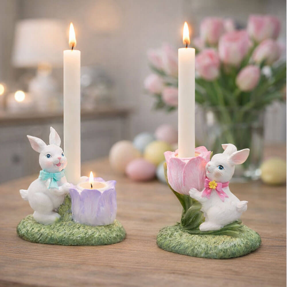 Подсвечник EDG Кролик с тюльпаном розовый В10 Подсвечник EDG Кролик с тюльпаном розовый В10