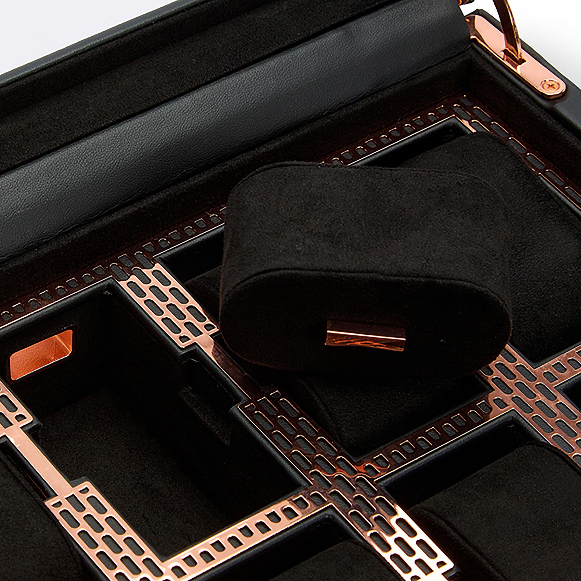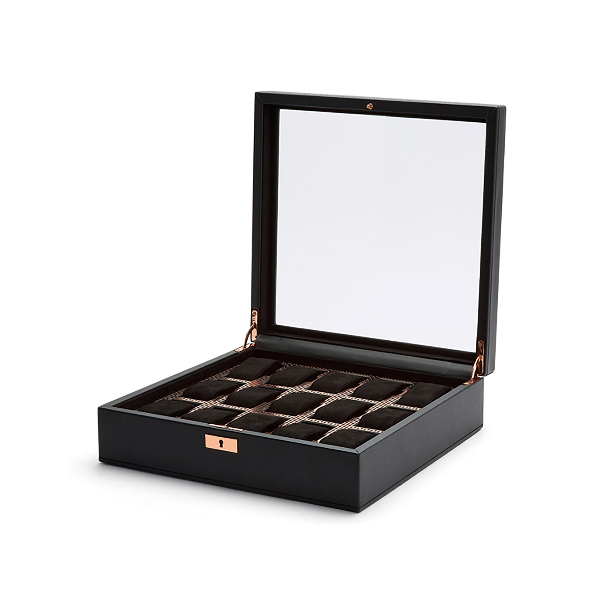 Шкатулка для часов WOLF Axis 15 отделений 33х32х10 черна медная