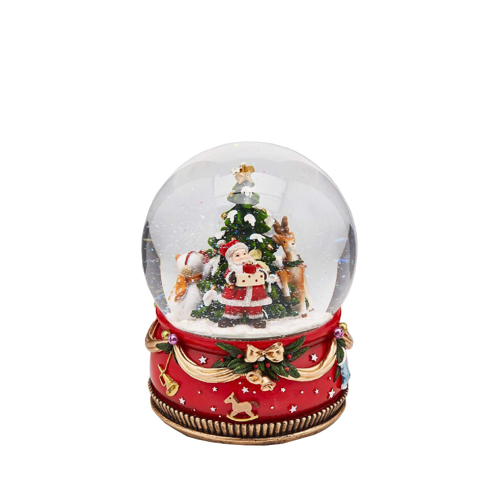 Снежный шар музыкальный EDG Санта с оленями возле елки LED В21
