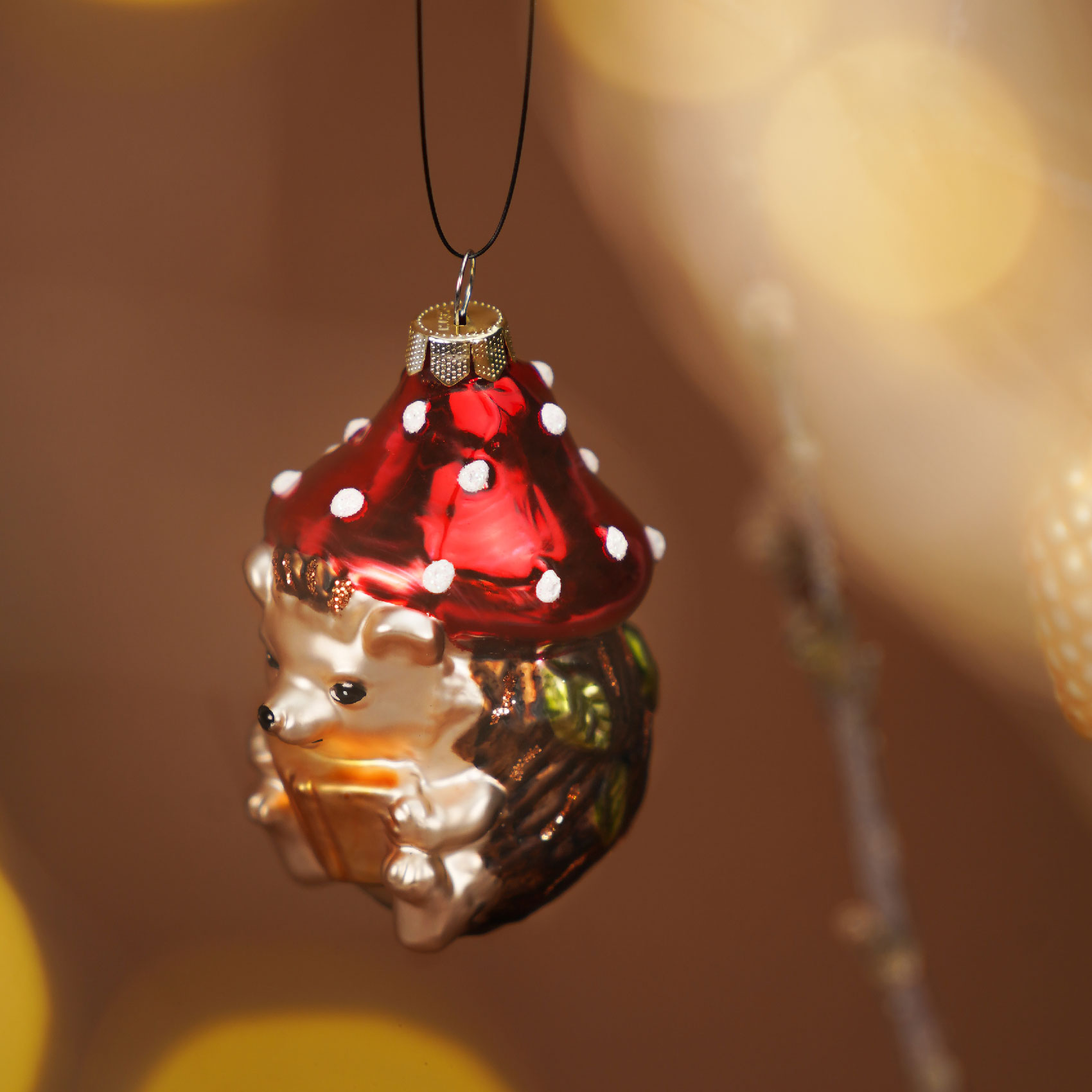 Ялинкова іграшка Inge Glas Їжачок з книжкою та мухомором В8