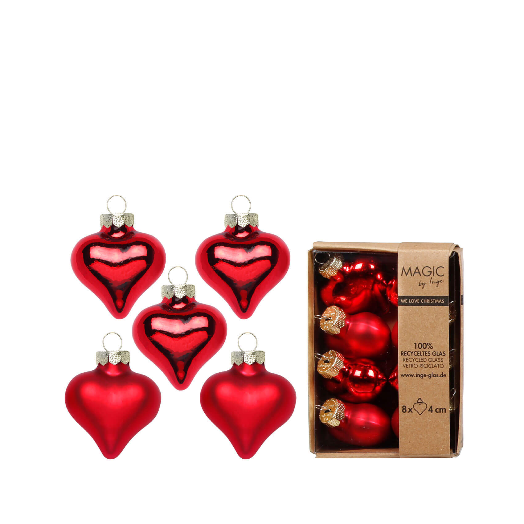 Набір ялинкових іграшок Inge Glas Серця червоні полум'яні В4х8