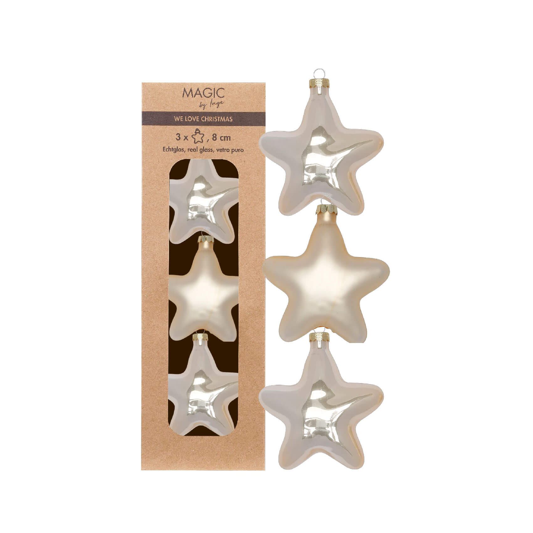 Набір ялинкових іграшок Inge Glas Зірки шампань В8 х3