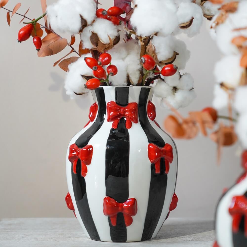 Ваза керамическая EDG Банты черно-белая В19